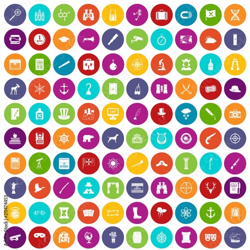 100 binoculars icons set in different colors circle isolated vector illustration