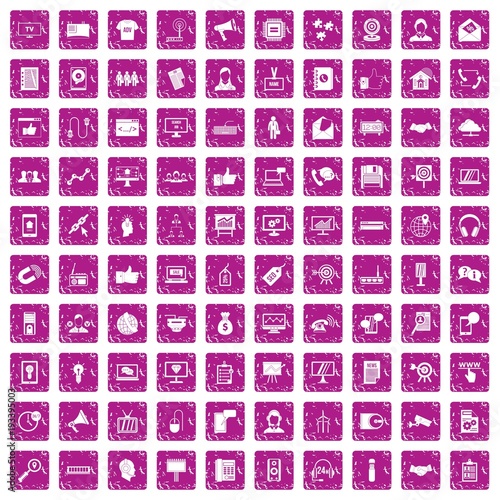 100 data exchange icons set grunge pink