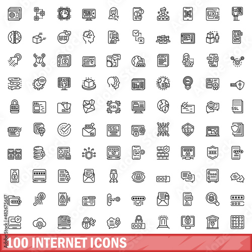 100 internet icons set. Outline illustration of 100 internet icons vector set isolated on white background