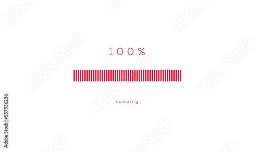 100 percent uploading Progress bar, red Loading and processing menu bar design.