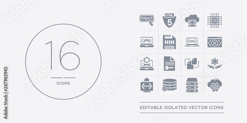 16 vector icons set such as cyberspace, data storage, database, developer, development contains duplicate, encryption, engineering, error. cyberspace, data storage, database from programming outline