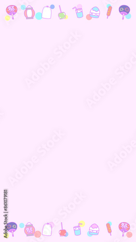 16:9 夏祭りのイラストセットフレーム♪