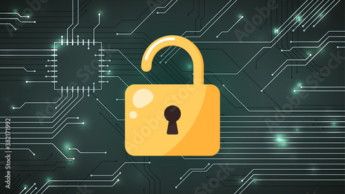 セキュリティーのイメージ_南京錠のイラスト_ロック解除_16:9