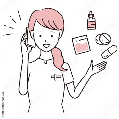 手描き1color 笑顔で薬を説明 オンライン
