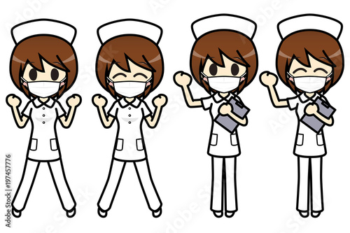 シンプルキャラクター 会話・表情イラスト集 看護師(パンツスタイル・マスク付き) 女性 ガッツポーズ2
