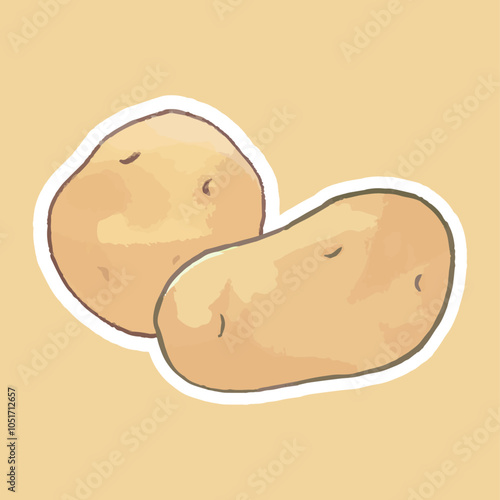 じゃがいも2つ_野菜イラスト手描きアイコン_カラーバック