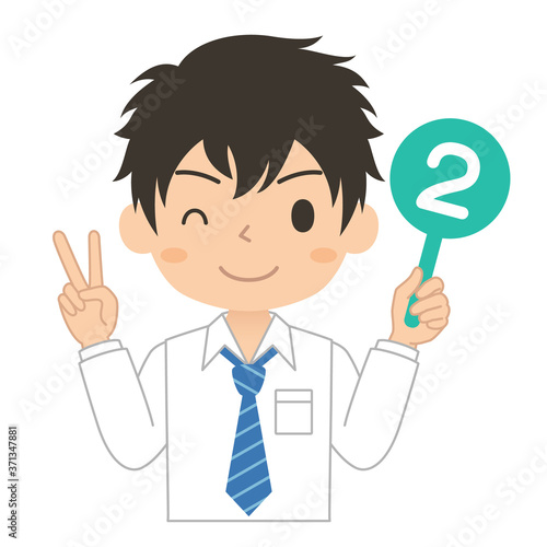 数字の2の札を持った男の子 高校生 中学生 イラスト
