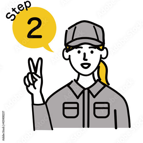 作業服 女性 若い ステップ 2 ポップ 手描き