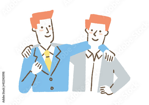 肩を組む男性2人