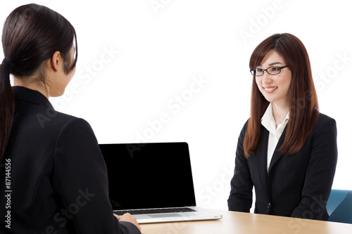 ビジネスウーマン ノートパソコン 2ショット 商談