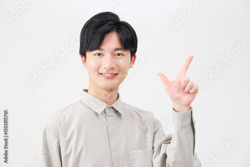 男性 チェックサイン 20代 白背景