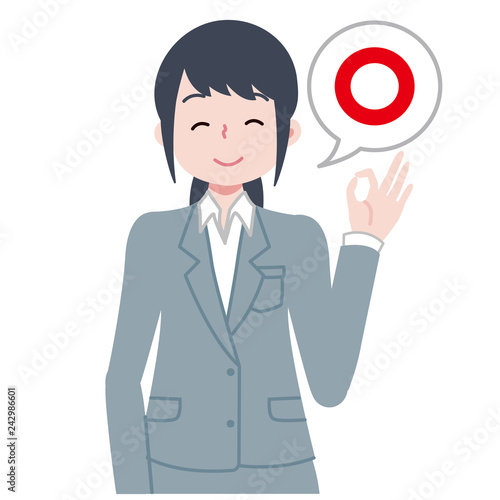 スーツ,ビジネス,社会人,会社,仕事,就職,転職,日本人,人物,ビジネスマン,会社員,リクルート,就職活動,転職活動,就活,新入社員,20代,若い,1人,白バック,イラスト,いっこ①,女性,可愛い,◯,OK,良い例,まる,回答,Q&A,質問,質疑応答,OKサイン