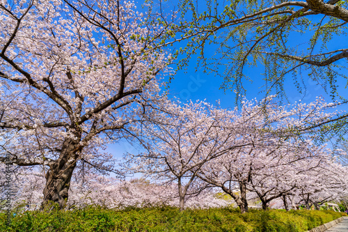 桜が満開に咲く猿江恩賜公園の並木道(2021年3月)