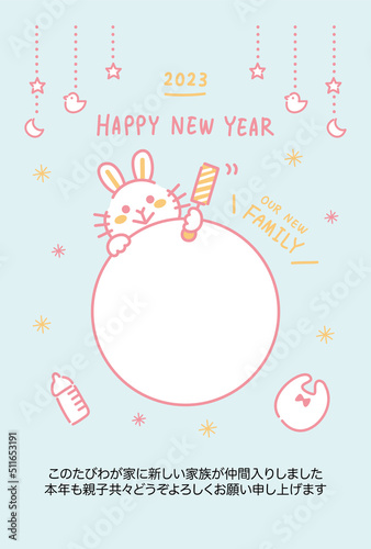 年賀状 2023 うさぎ 出産報告 フォトフレーム 添書きあり