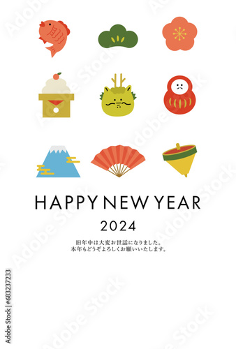 2024 辰年 年賀状 お正月 雪輪 門松 カード 日本 ベクター