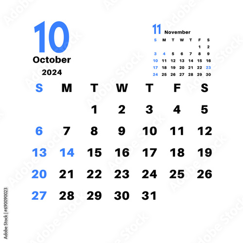 2024年10月 シンプルなカレンダー