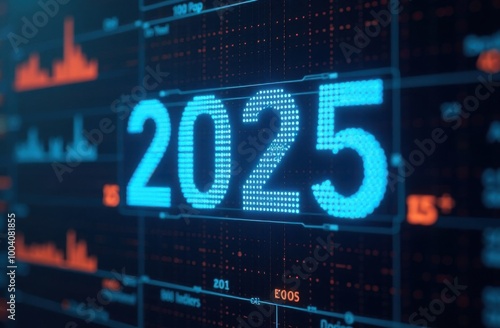 2025 year shining on digital display showing analytics charts