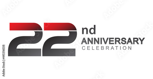 22nd anniversary logo red and black design simple isolated on white background for anniversary celebration.