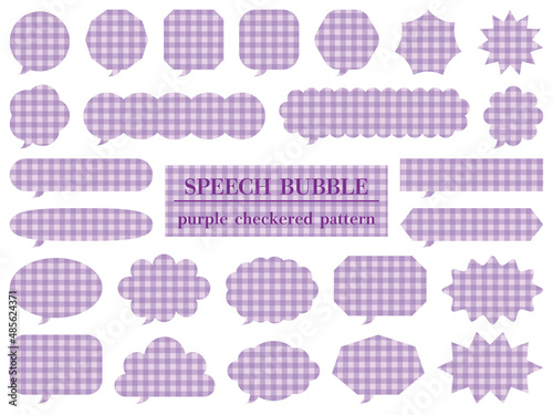 チェック柄の吹き出し25個セットのイラスト(紫)