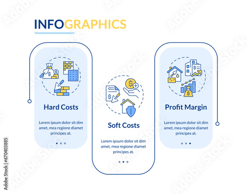 2D construction cost vector infographics template with line icons, data visualization with 3 steps, process timeline chart.