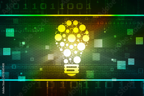 2d illustration bulb future technology, innovation background, creative idea concept