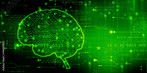 2d illustration Concept of thinking, background with brain, Abstract Artificial intelligence. Technology web background