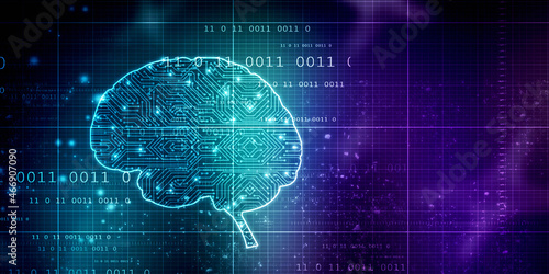 2d illustration Concept of thinking, background with brain, Abstract Artificial intelligence. Technology web background