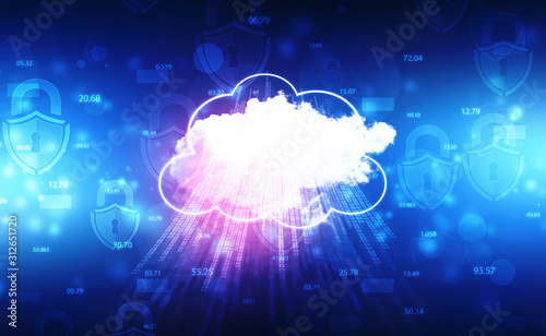 2d illustration of Cloud computing, Cloud Computing Concept, Cloud computing technology internet concept background