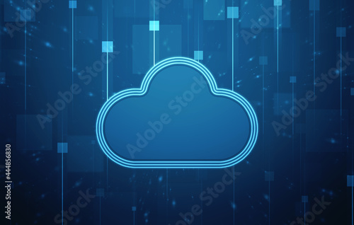 2d illustration of Cloud computing, Digital Cloud computing Concept background. Cyber technology, internet data storage, database and data server concept
