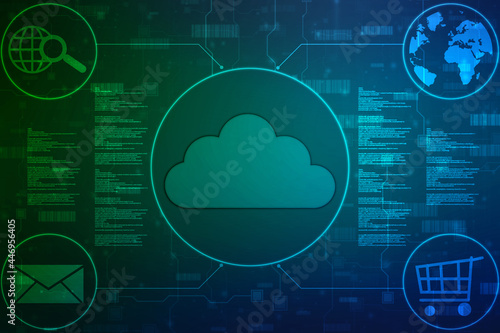 2d illustration of Cloud computing, Digital Cloud computing Concept background. Cyber technology, internet data storage, database and data server concept