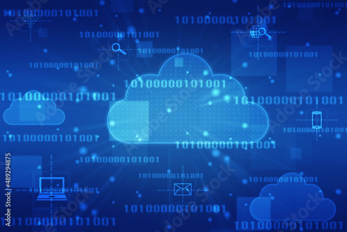 2d illustration of Cloud computing, Digital Cloud computing Concept background. Cyber technology, internet data storage, database and data server concept