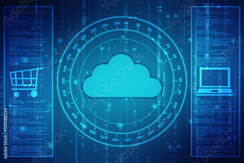 2d illustration of Cloud computing, Digital Cloud computing Concept background. Cyber technology, internet data storage, database and data server concept