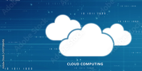 2d illustration of Cloud computing, Digital Cloud computing Concept background. Cyber technology, internet data storage, database and data server concept