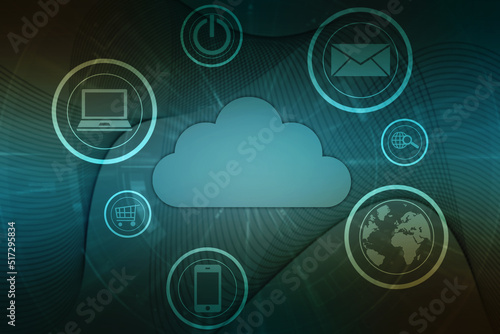 2d illustration of Cloud computing, Digital Cloud computing Concept background. Cyber technology, internet data storage, database and data server concept