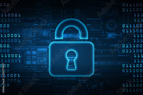 2d illustration Safety concept: Closed Padlock on digital background