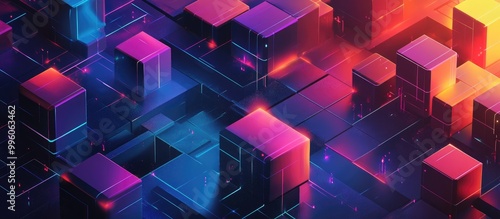 2d low poly isometric geometric design featuring a vibrant glitch effect
