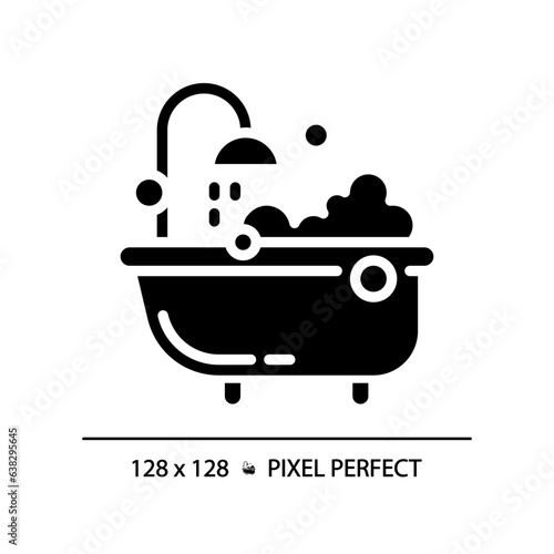 2D pixel perfect silhouette glyph style bubble bath icon, isolated vector, illustration, solid pictogram.