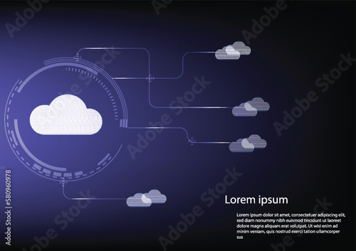 2d rendering technology Cloud computing.Blue background.