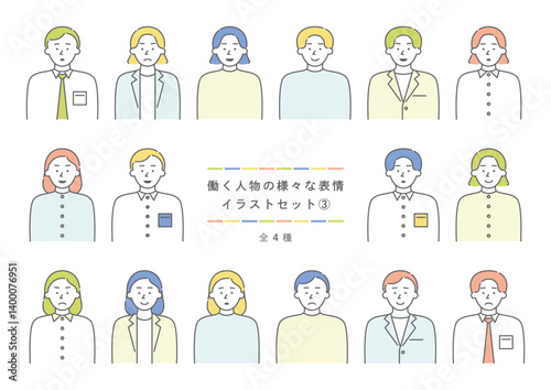 働く人物の様々な表情イラストセット3