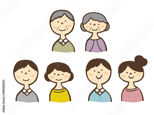かわいい3世代親子のファミリー/手描きイラスト素材