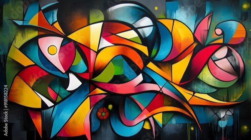 33. A bold graffiti-style artwork with a mix of vibrant colors, abstract shapes, and dynamic lines