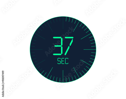 37 sec Timer icon, 37 seconds digital timer. Clock and watch, timer, countdown