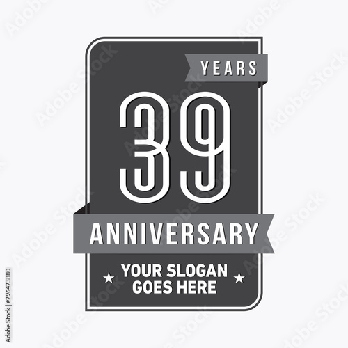 39 years anniversary design template. Thirty-nine years celebration logo. Vector and illustration.
