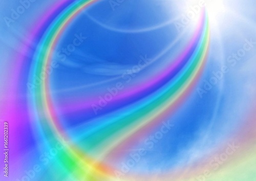 青空と抽象的な虹と太陽の3dイラスト