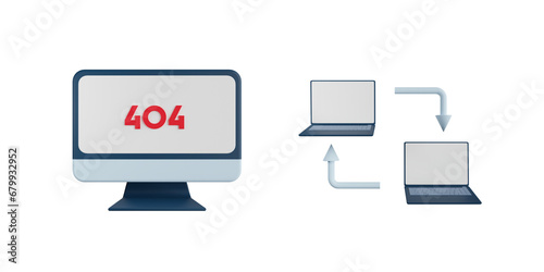 3d 404 error, computer data transfer. Cloud networking 3d render icon pack. High quality render