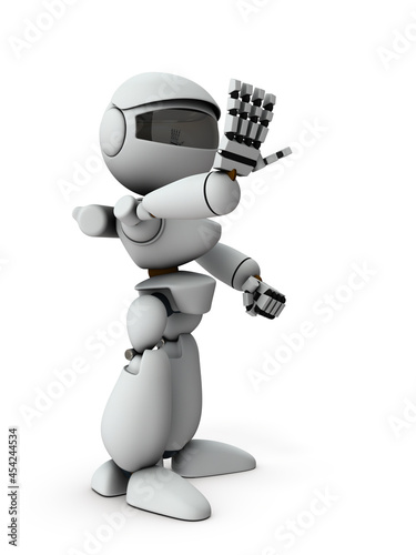 制限し統制する人工知能のロボット。白バック。3Dレンダリング。