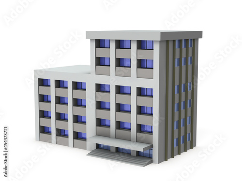 警察署のミニチュアモデル。白バック。3Dレンダリング。