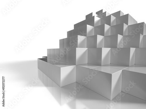 白いキューブで積み上げられたピラミッドの3Dイラスト