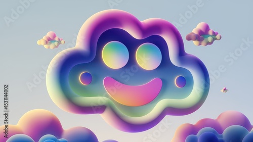 3D Abstract AI Clouds with Soft Color Gradient and Shadow