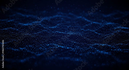 3D abstract dark blue background with dots pattern vector design, technology theme, dimensional dotted flow in perspective, big data, nanotechnology